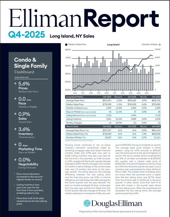 Check out the latest real estate quarterly and monthly market reports (sales & rentals) with ELLIMAN REPORTS, published by Douglas Elliman Real Estate. Request your market report today!